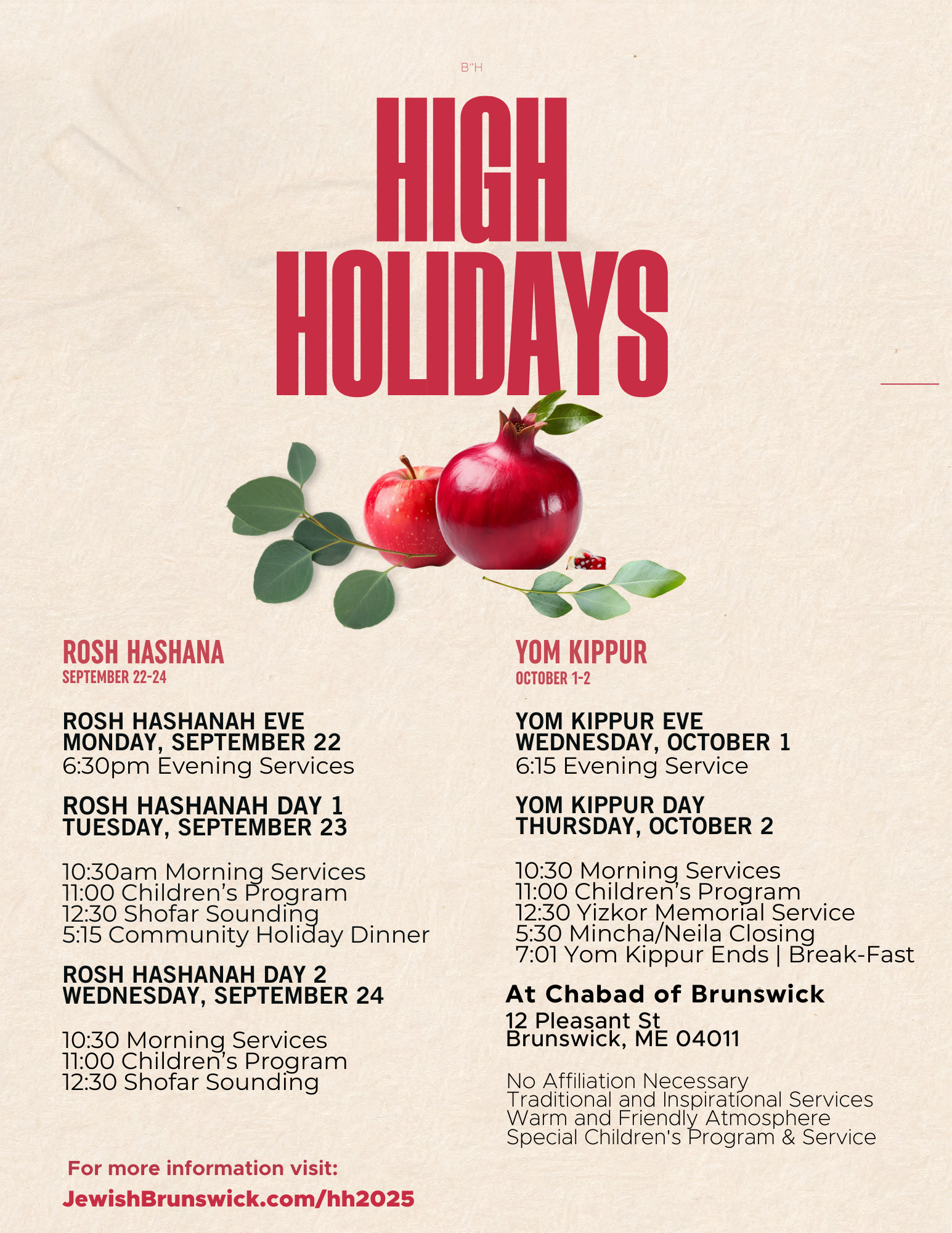 High Holiday Schedule