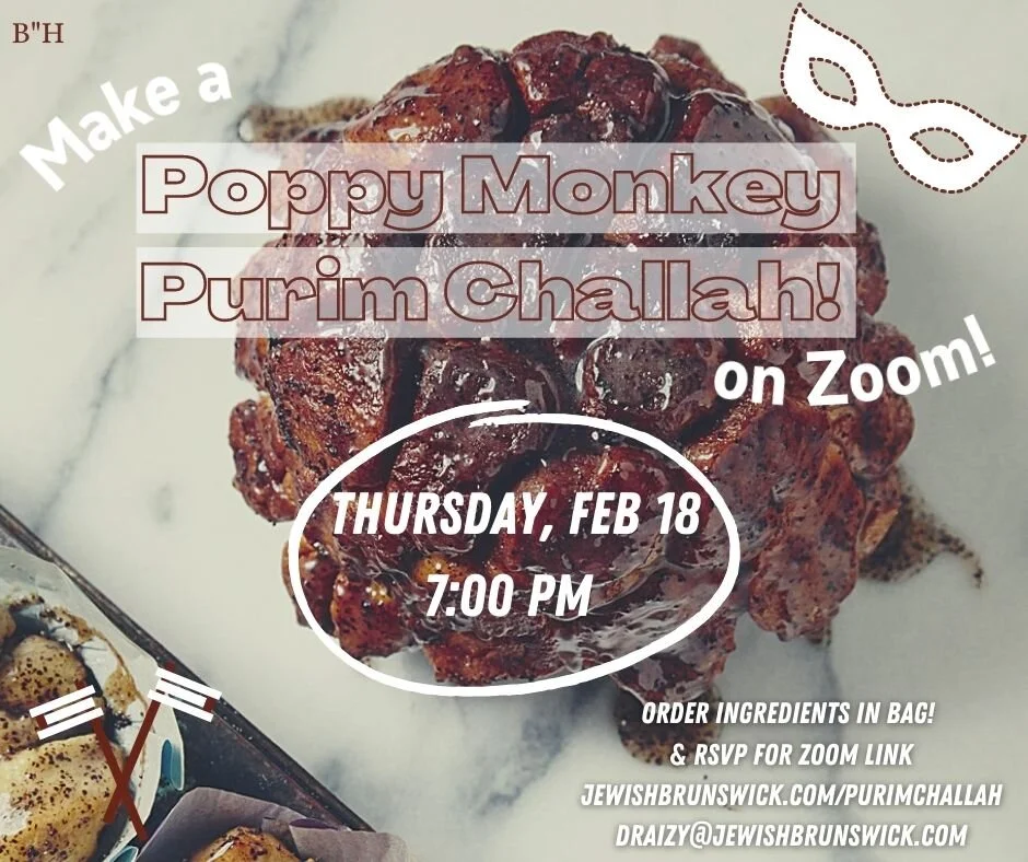 Join me on Thursday, February 18, at 7:00pm to find out and bake delicious Poppy Seed Monkey Challah with other Jewish Women!